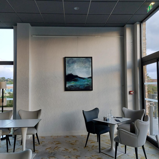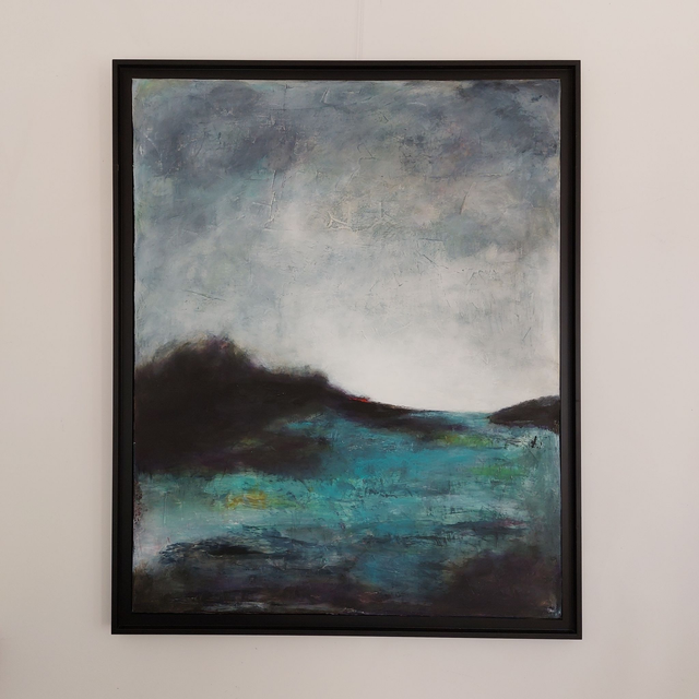 Peinture Acrylique sur Toile, 100cmx80cm, 2023, Paysage marin, bleu, noir. Vendu encadré (caisse américaine noire). Livré avec Certificat d'authenticité. Création originale Patricia DELORME Artist