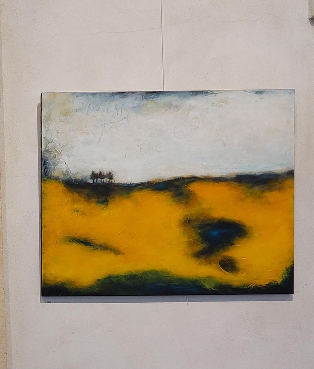 Peinture Acrylique sur Toile, 81cmx100cm, 2024. Campagne, prés jaunes. Livré avec Certificat d'authenticité. Création originale Patricia DELORME Artist